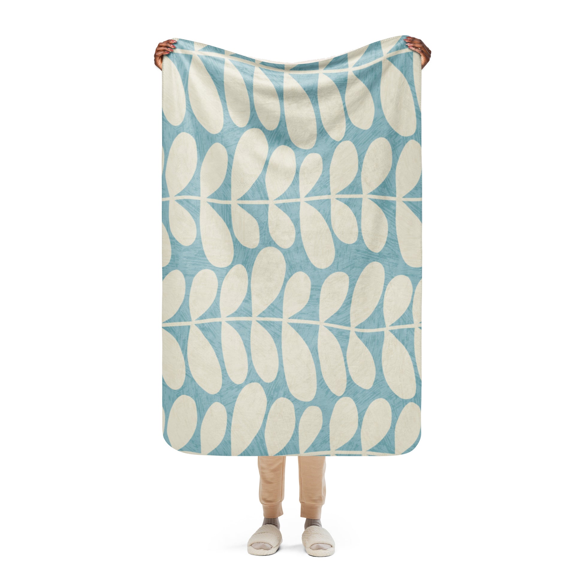 UNIQUE CREAM/LIGHT BLUE PATTERNED Sherpa blanket