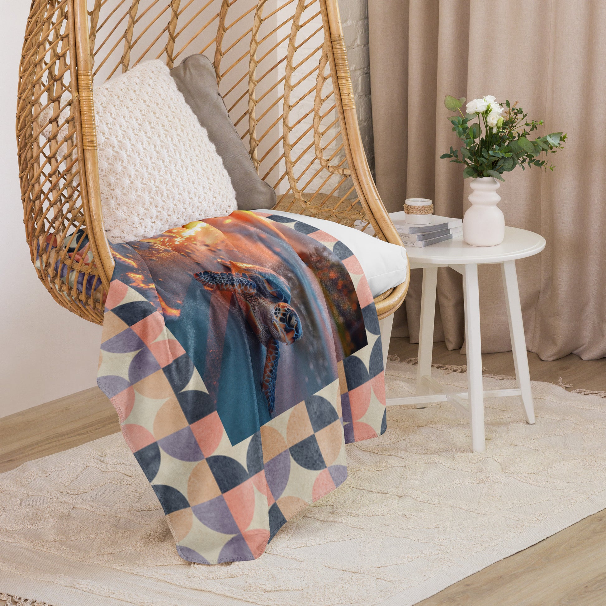SEA TURTLE ON BEACH Sherpa blanket